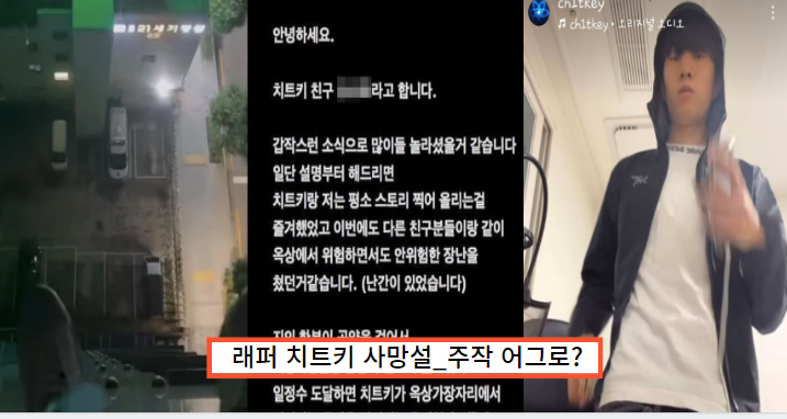 이와 같은 내용에 네티즌들은 갑작스런 래퍼 치트키의 사망설에 믿을 수 없다는 반응을 보이면서 명복을 빌기도 했습니다.